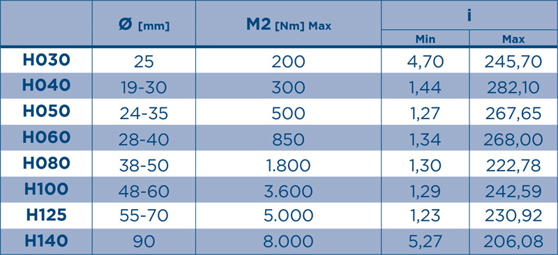 • · H-系列包括通用模組,這個齒輪組可用在鑄鐵(機座030 到140)。