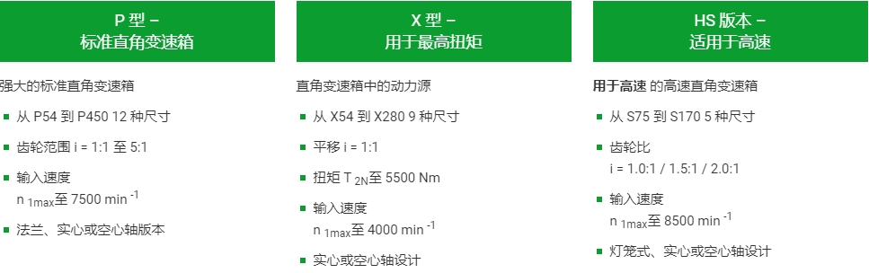 • · 輸出扭矩可達到 7000 Nm (減速機尺寸 P27 – P450)